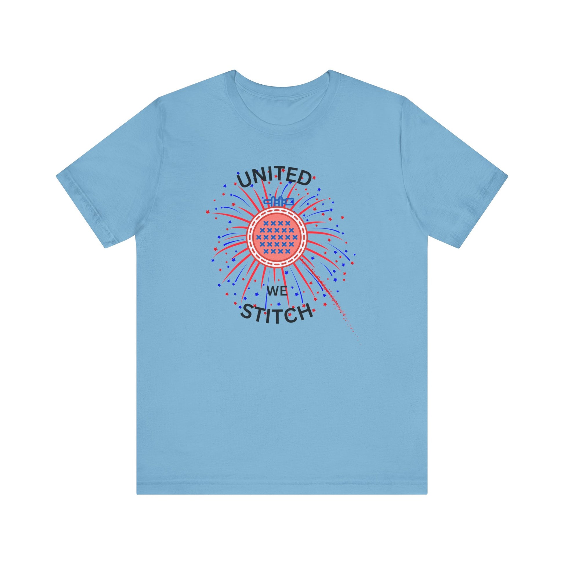 United We Stitch Graphic Tee, Cross Stitch Lover, Patriotic Cross Stitch, Fireworks